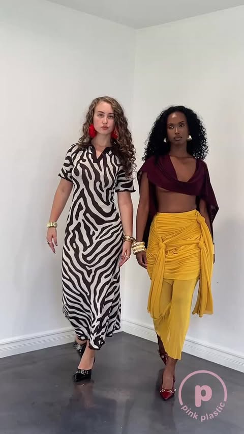 Dress link: shoppinkplastic.com/collections/new-arrivals/products/zebra-dress Top link: shoppinkplastic.com/products/burgundy-top?_pos=1&_psq=gabby&_ss=e&_v=1.0 Skirt link: shoppinkplastic.com/products/yellow-skirt?_pos=1&_psq=Cecili&_ss=e&_v=1.0